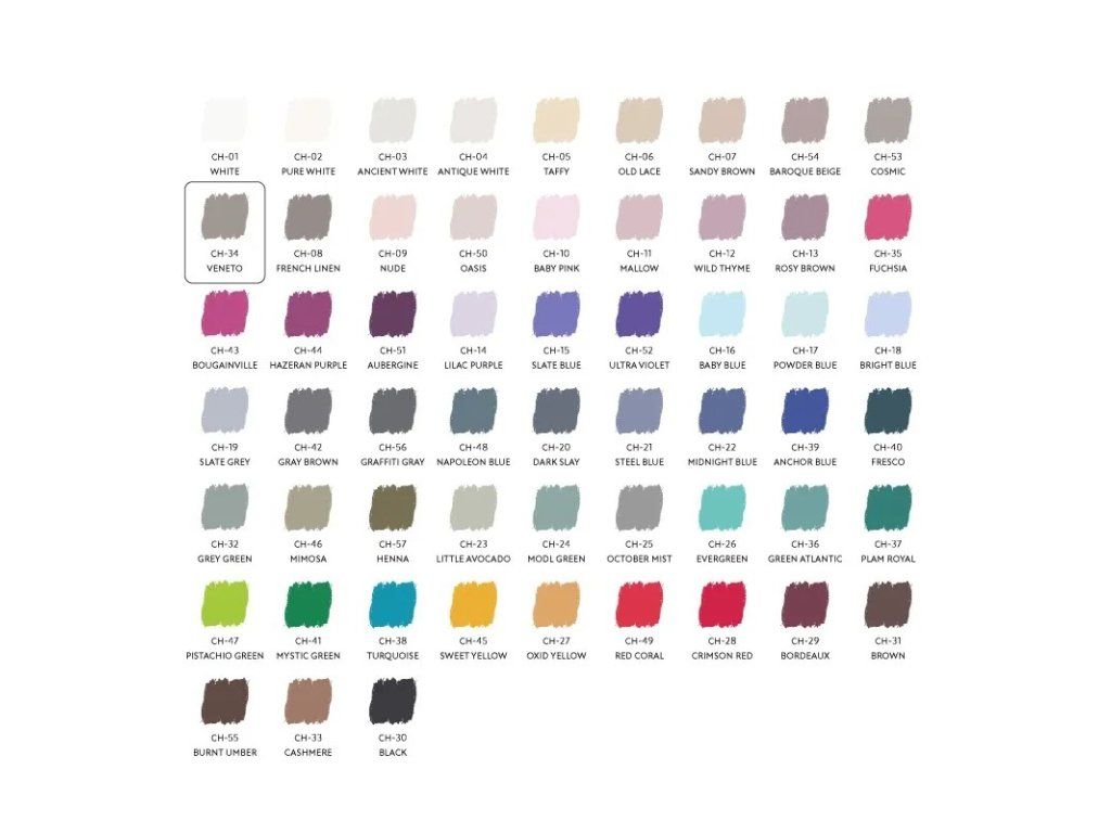 Jemná, dekorativní, matná akrylová barva s podílem křídy, která dodá předmětům sametový, starobylý vzhled ve stylu Shabby Chic. Barva je krémové konzistence na vodní bázi. Snadno se roztírá a není třeba provádět základní nátěr. Aplikovat ji můžeme válečkem, štětcem nebo houbičkou. Vhodná je i pro práci se šablonami. Je vysoce krycí a rychleschnoucí. Odstíny se dají vzájemně míchat.